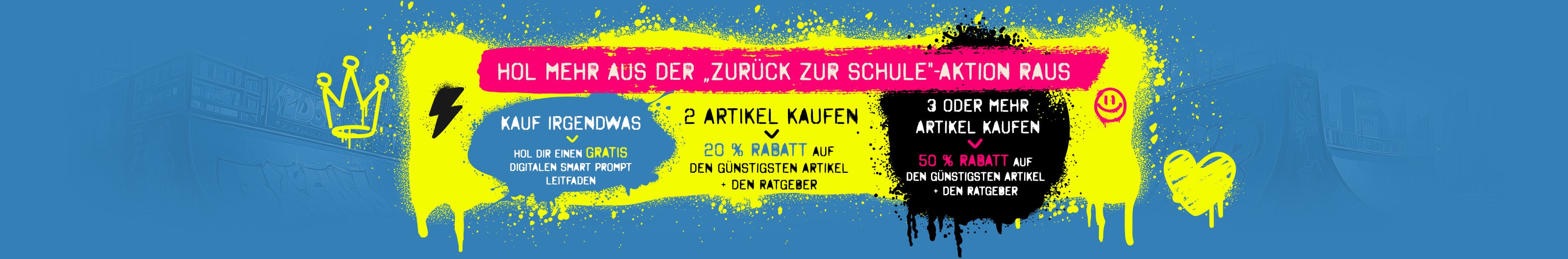 Spare 20 % auf den günstigsten Artikel beim Kauf von 2 oder 50 % beim Kauf von 3 oder mehr im Rahmen unserer „Zurück zur Schule“-Aktion.