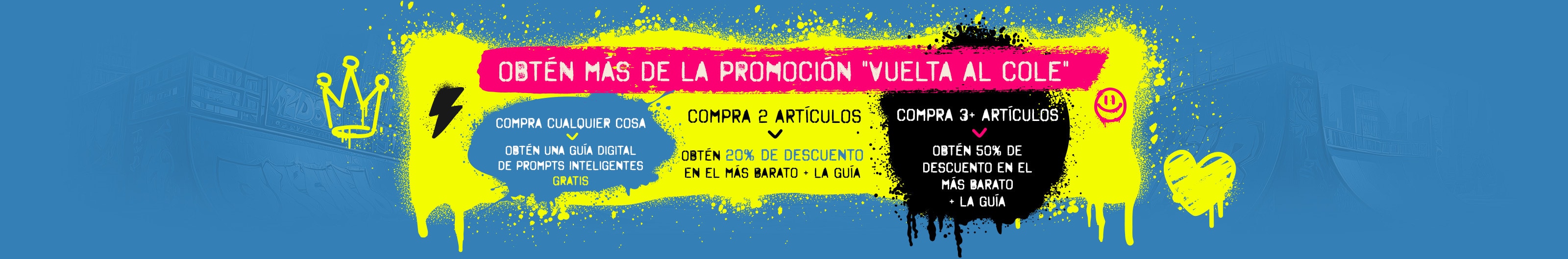 Obtén un 20% de descuento en el artículo más barato al comprar 2, o un 50% al comprar 3 o más de nuestra promoción "Vuelta al cole".