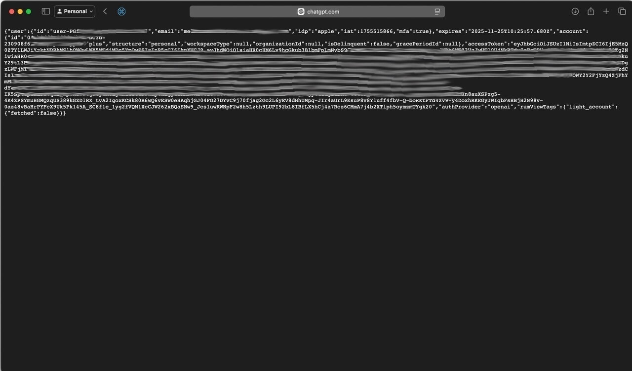 https://chatgpt.com/api/auth/session - A page with code and text will appear.