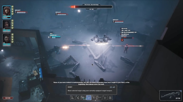 - Tactical Combat - Turn-based tactical combat with emphasis on realistic depiction of firefights. Suppression plays a key role as every shot drains the Action Points of its target and those nearby. Defeating enemies requires smart use of the fire and maneuver tactic. Your characters can have an array of special abilities that allow them to manipulate the battlefield - change turn order, transfer Action Points or mitigate the effects of suppression.
