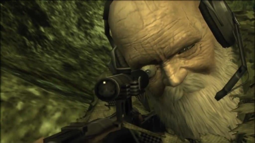 Moving on, we have one of the most unique bosses in Snake Eater. It is a legendary sniper who weakens the player’s condition by firing shots from a tranquilizer gun. The boss hides in a vast forest and tries to hit the player from a long distance. Its attacks do not cause direct damage, but rather weaken the player’s condition.