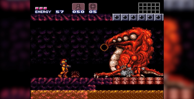 This 1994 side-scroll action-adventure game follows bounty hunter Samus Aran as she attempts to reclaim the Metroid creature from the unpredictable Space Pirates.