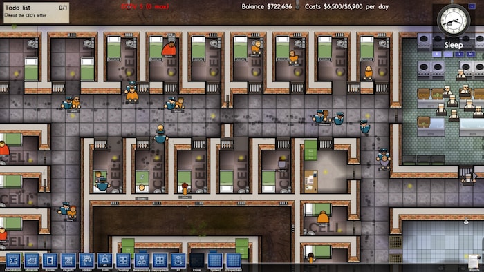 Additionally, the game introduces an intricate prisoner management system, where players must address the needs and behaviors of inmates, ranging from physical well-being to security and reform programs. Managing staff, like guards, cooks, and janitors, is another essential aspect of the gameplay, as their efficiency and well-being directly impact the smooth operation of the prison.
