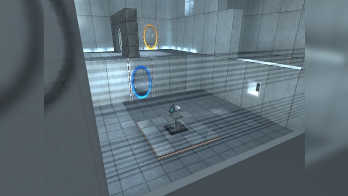 As Chell, you’re put to a series of tests in a pristine research facility. It’s a test of intelligence, but also (mainly) a test of the Aperture Science Handheld Portal Device, better known as the Portal Gun, because it shoots portals.