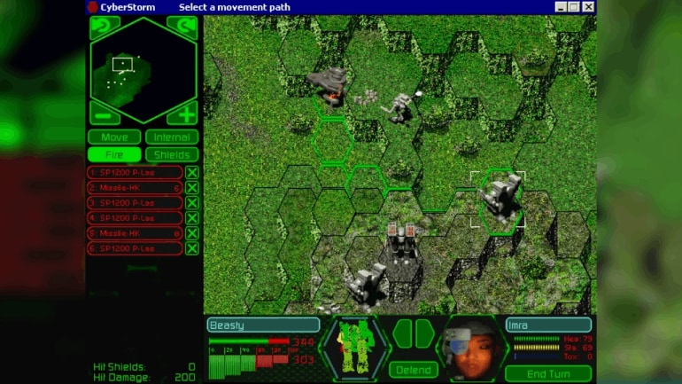 CyberStorm is a turn-based strategy where you, as a subject of the Unitech Corporation, get to manage your own merry little warband of synthetic mech pilots, known as BioDerms.