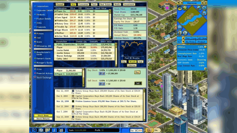 Capitalism Lab is an expansion of Capitalism II, introducing new mechanics like widescreen mode and an inflation indicator.