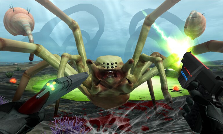 Crashland is a VR game that takes place on a hostile alien planet. The player assumes the role of an intergalactic gladiator who has crash landed and must survive until rescued.