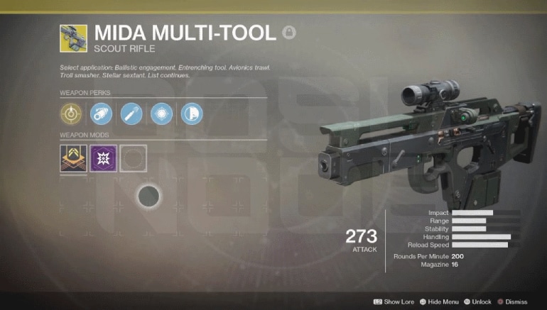 Obtain the MIDA Mini-Tool (see above) Talk to Banshee-44 in the Tower Complete the Under the Hood quest by dismantling 5 Legendary or Rare Scout Rifles Complete The Fall Will Kill You quest by getting 50 airborne SMG kills Complete the Sight, Shoot, Repeat. Acquire 50 Precision Kills and 25 Multi Kills without reloading your Scout Rifle. Return to Banshee-44