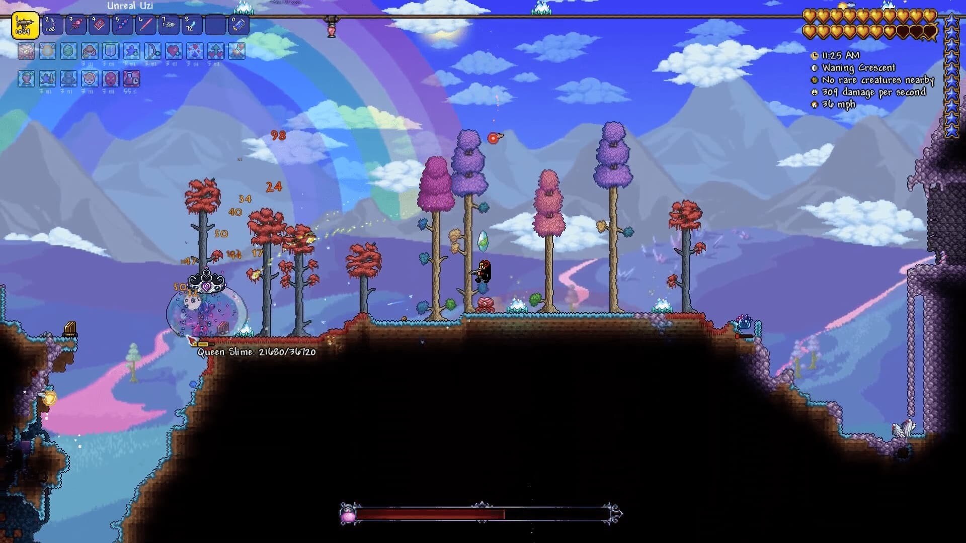 - Queen Slime (Hardmode) – she appears only in the Hallow and introduces fast aerial movement and projectile spam, making her a tougher optional challenge early in Hardmode.
