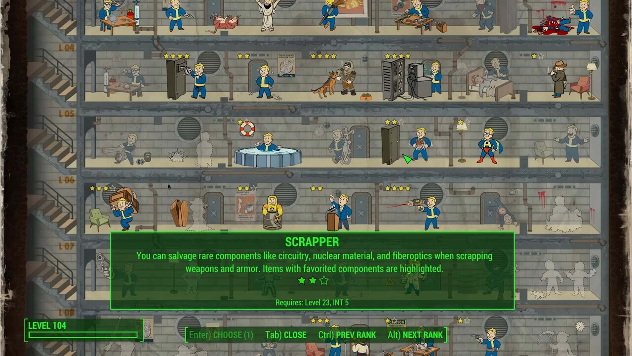 Rank 2 Scrapper also has a hidden bonus that’s often overlooked; it will highlight items with favored components, making them easier to find. It’s a neat little gimmick that can be very useful, especially if you’re not yet experienced enough to remember what item gives which components. Plus, it applies to junk items too, not just weapons and armor.