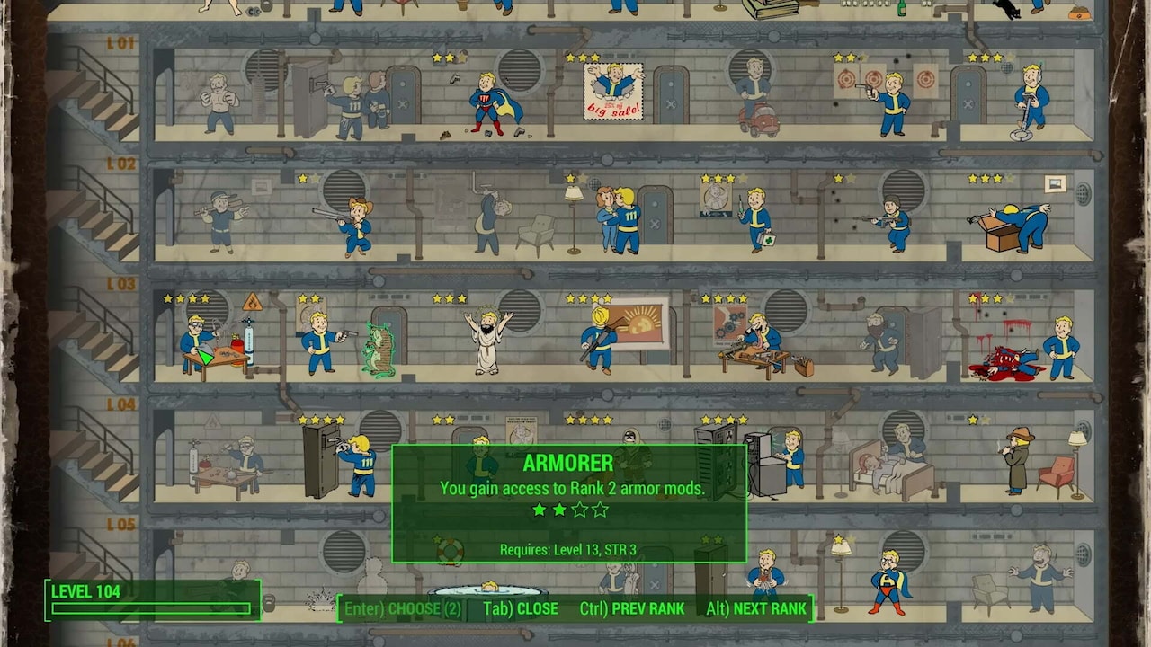 Rank 3 comes with a very convenient upgrade that allows you to invest caps to permanently increase a store’s buying capacity, making selling items far easier, as you need to visit far fewer stores to sell your loot.