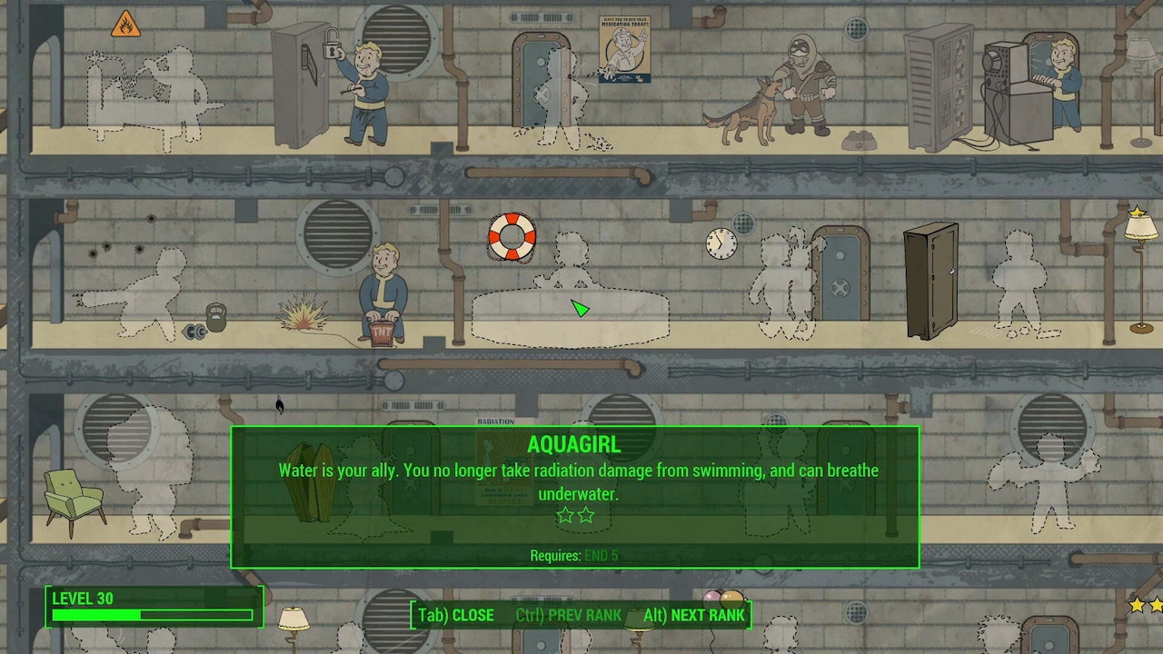 | Aquaboy / Aquagirl | END 5 | Take later | Breathe underwater and ignore radiation from swimming. | Great for exploration and hidden loot; pick after core combat perks. |