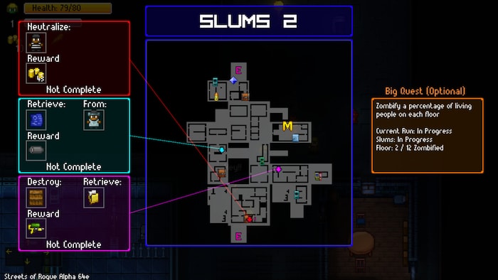 This is where Streets of Rogue comes to shine. It brings several levels of a procedurally generated city, plenty of enemies to deal with, and, to provide a little bit of extra motivation, a whole bunch of open-solution quests inspired by immersive sims.
