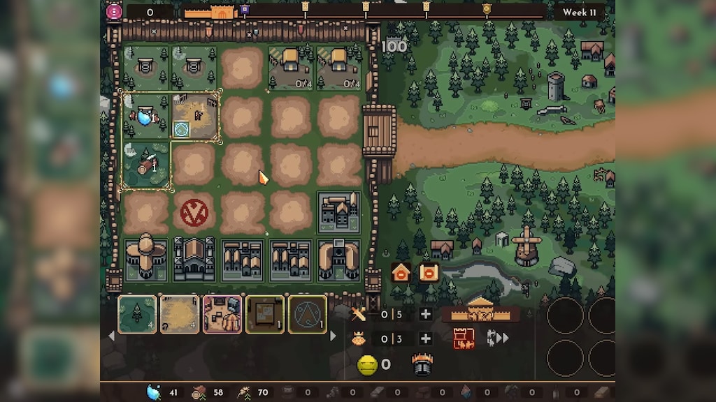 Resources fuel everything: buildings, repairs, upgrades, even your gaze expansion. At any moment, you can shift buildings around or scrap them for efficiency, so no room for wasted space.