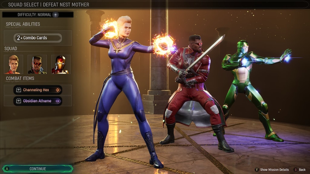 One of my favorite parts of the game is assembling my team before each mission. Some nights I’d pick a squad for pure power – Hunter (he’s with me all the time), Ghost Rider, and Blade – other nights I’d experiment with quirky combos just to see if they’d work.