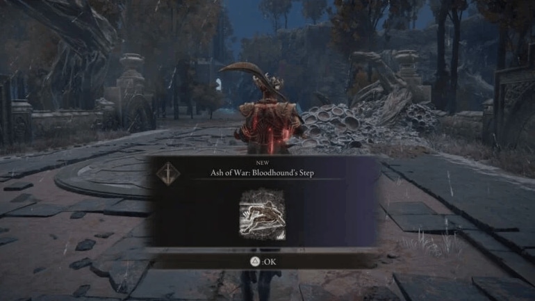 Bloodhound’s Step is an Ash of War you can obtain for defeating Night’s Cavalry at the bridge in front of the Lenne’s Rise tower (Dragonbarrow).