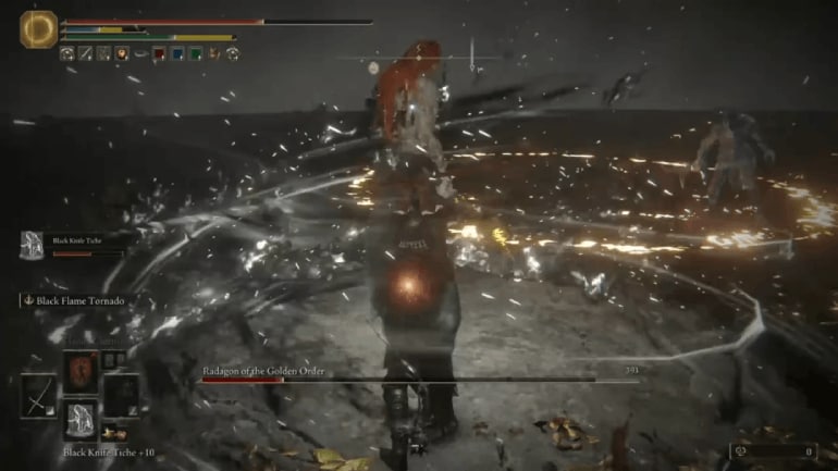 Black Flame Tornado is an Ash of War assigned to the Godskin Apostle’s weapon — the Godskin Peeler Twinblade, obtained after defeating the Godskin Duo Boss inside the Dragon Temple area.