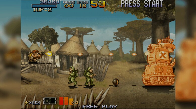 The classic run and gun arcade Metal Slug series originated in the 1990s. Imagine kids crowding around a slot machine and watching someone playing a small character.
