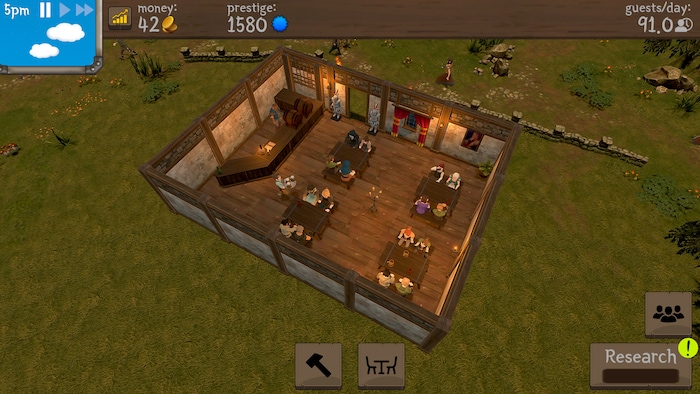 It is similar to Winkeltje: you have a parcel of land on which you can build your tavern, starting with a small building and expanding as your resources and guest demands increase. Evolving from a small pub to a lavish inn takes a while but is very satisfying.