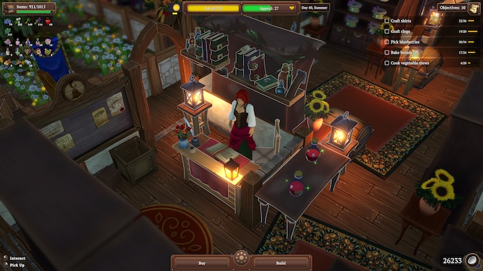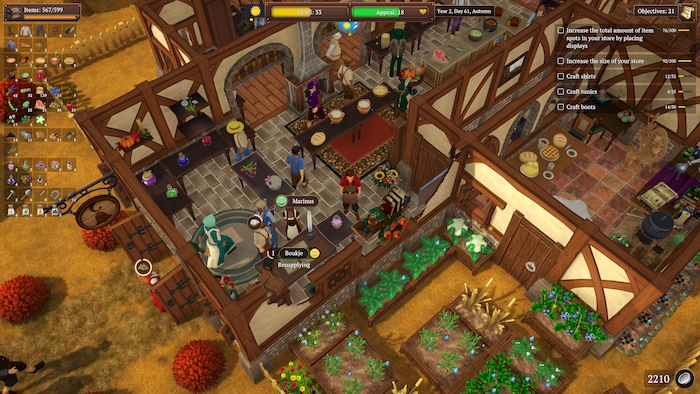 There are also crafting and farming segments, allowing you to create your own stock. You can also specialize your business by focusing only on one category of wares, like tools to become a blacksmith or clothes to become a tailor.
