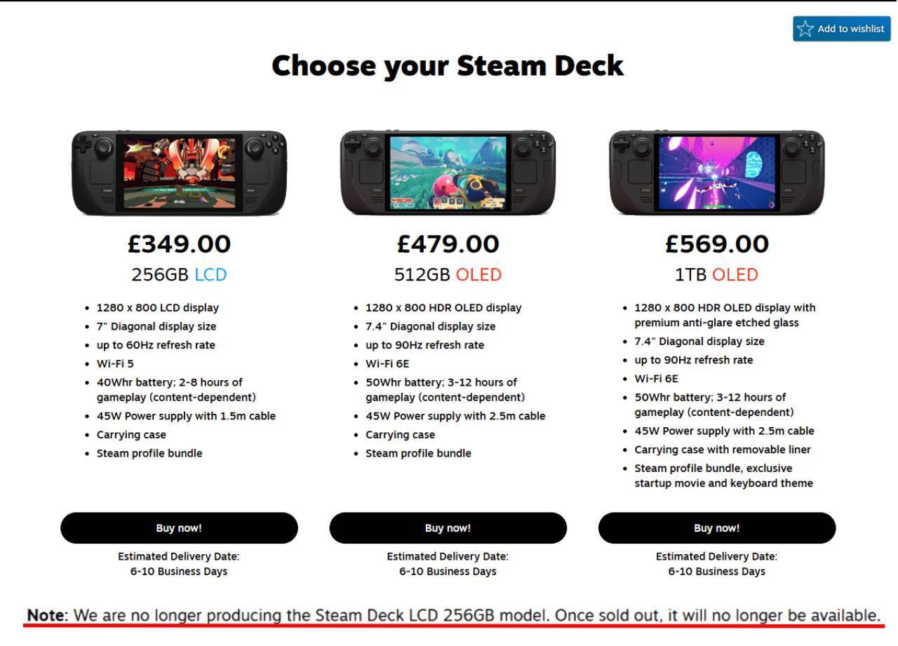 “We are no longer producing the Steam Deck LCD 256GB model. Once sold out, it will no longer be available.”