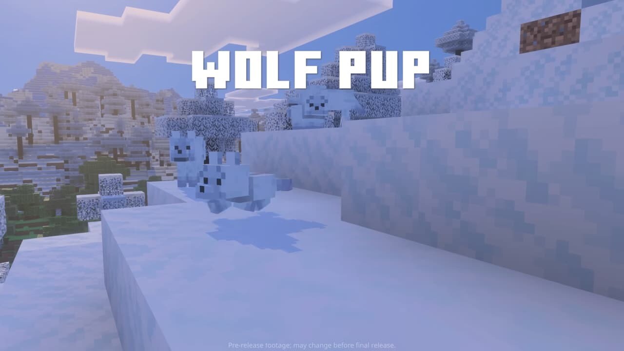 Visuals for baby mobs have been updated, including Cow, Sheep, Pig, Cat, Ocelot, Mooshroom, Wolf, and Chicken. Rabbits received new animations and bounding boxes, and their old textures were removed. Baby Wolves, Cats, and Pigs now have distinct new sounds.