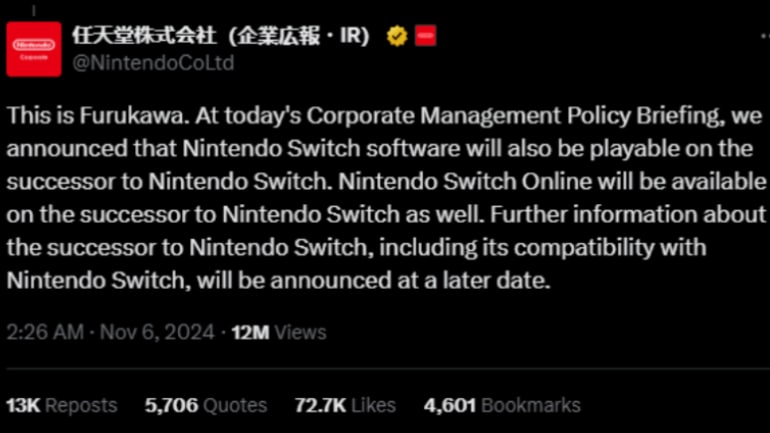 It’s a piece of news coming from Nintendo’s Corporate Management Policy Briefing, reported via the Japanese publisher’s corporate X account. That same statement also says Nintendo Switch Online will be available for the upcoming console.