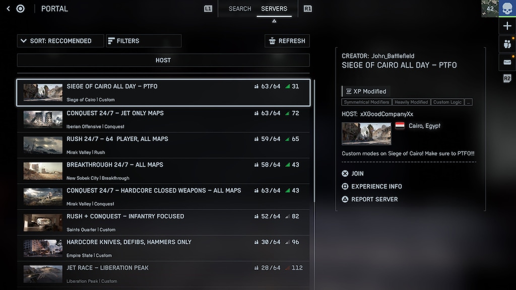 One key feature in testing is the long-requested server browser. It’s coming to Portal and can be accessed through the Community tab. This early version is intentionally limited. DICE is starting small so they can dial in the basics: clean UI, reliable connections, and user-friendly design.