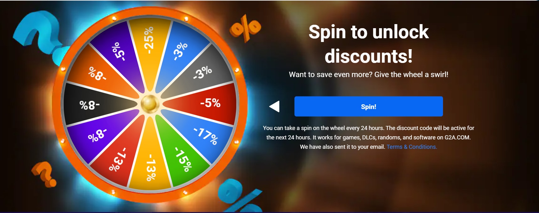 Find out how you can spin the discount wheel and get even 25% off all games and DLC on G2A.COM. Be quick, though – you only have time until the end of the weekend!