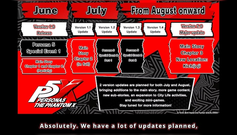 But there’s more stuff on its way to the owners of Persona5: The Phantom X. The post-release roadmap boasts plenty of content that will soon come to the game. Expect things like new events, story expansions, Palaces, Synergy stories, city life updates, with a major update dropping, like, every couple of weeks.