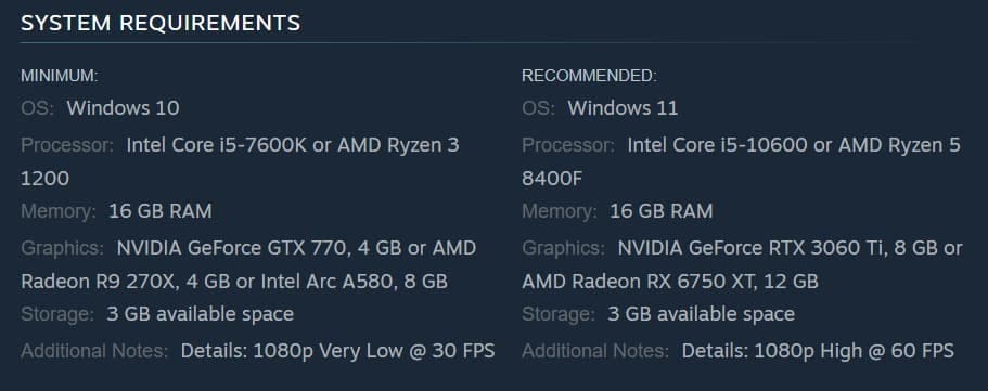 Tales of the Shire is a cozy and friendly game that fits perfectly into the world of low spec games. Based on the official system requirements, the game can run well even on older machines. The minimum setup includes a GTX 770 graphics card, 16GB of RAM, and some basic storage space – so even computers from around 2013 can enjoy peaceful Hobbit life.