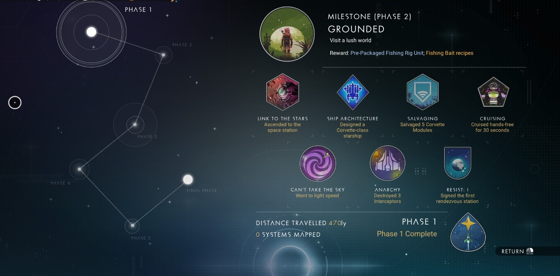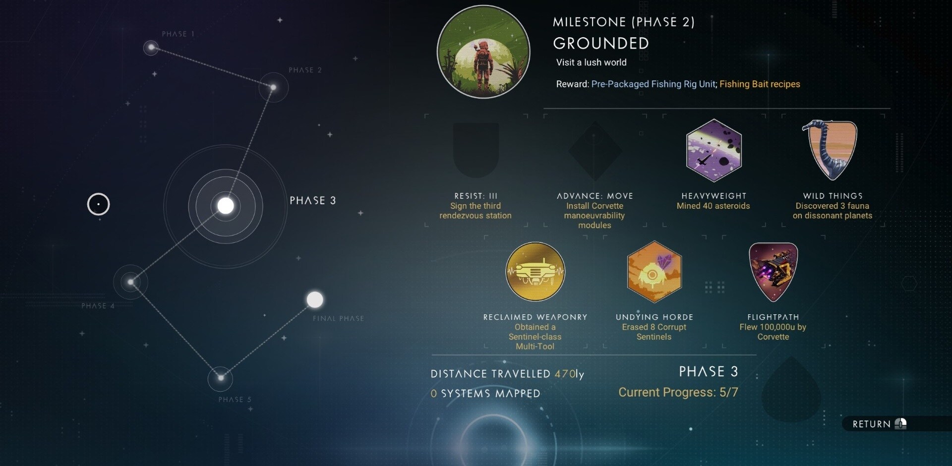 The Corvette Expedition will run for six weeks from September 3 to October 16, and presents five phases of seven or eight objective to complete, each step awarding a batch of resources such as free parts for your first modular ship, upgrade technologies for your suit, ship, and multitool, decorations, or just credits and nanites.